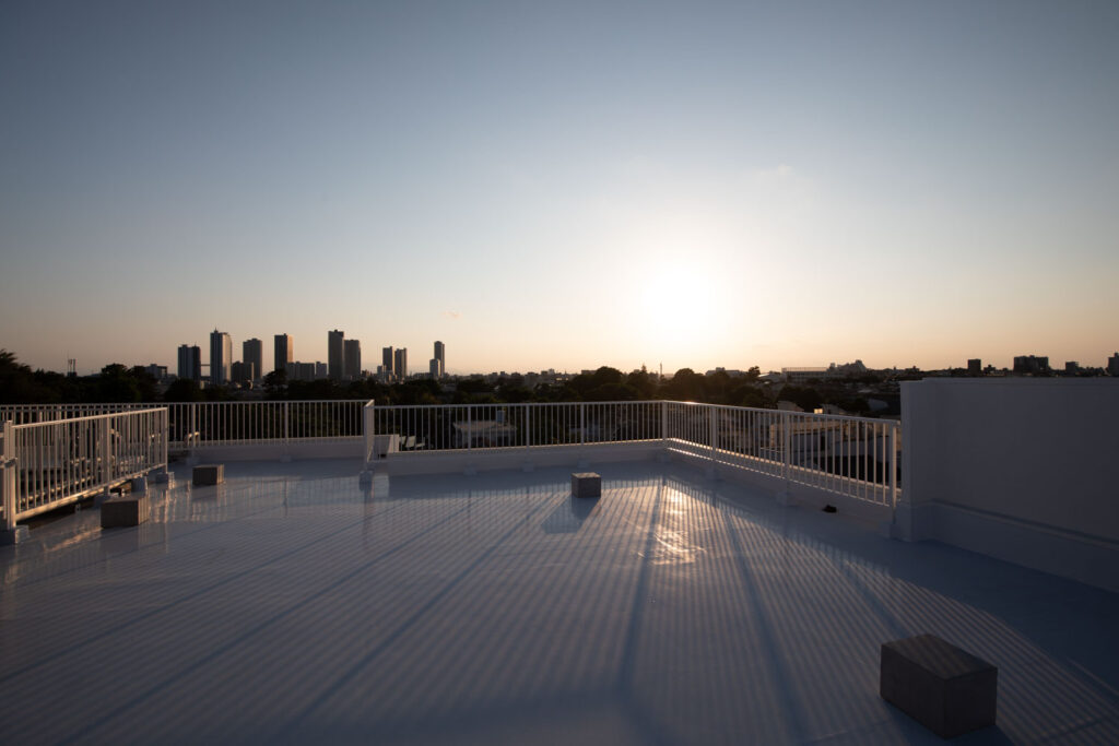 約185㎡の広大な屋上。抜けの良いロケーションは開放感が抜群で、躍動感のあるスチール撮影や動きのあるムービー撮影に最適です。高層ビルを背景にした夕景、夜景撮影は室内とは一味違う被写体の魅力を新たに引き出すことが期待できます。