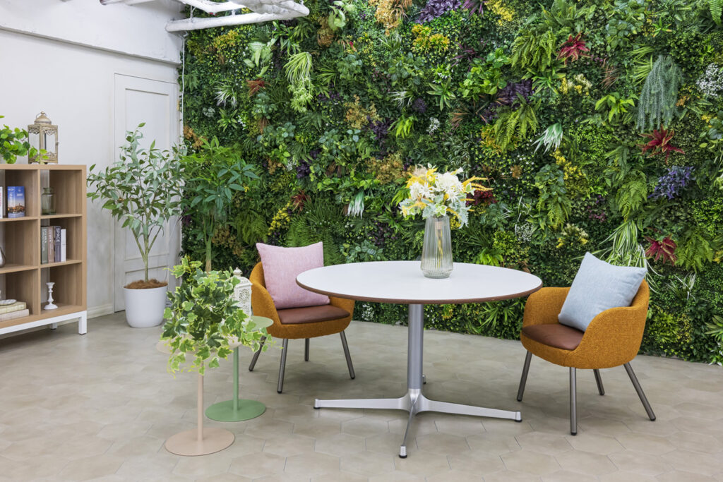 横幅5mのグリーンウォール。スチールの背景としてはもちろんのこと、対談やインタビューなど動画撮影の背景としてもおすすめです。