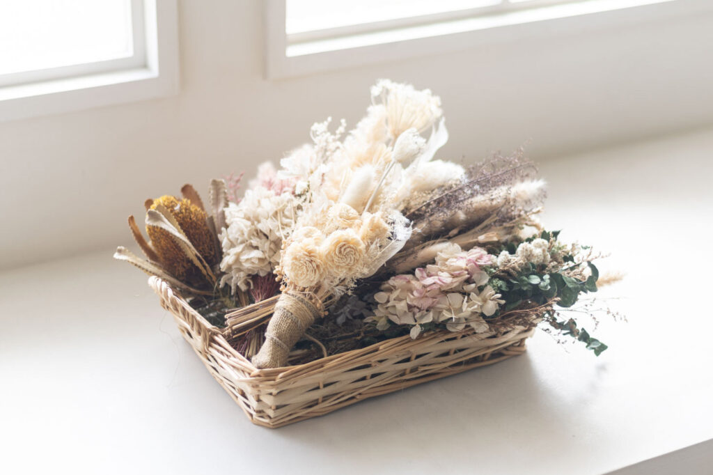 L字状に取り囲む窓面とドア面には大きなアンティークガラスの窓と白いカーテンを配置。全面に自然光が差込む東南西に面したサンルームは窓裏ライティングが可能で、曇りや雨天時、早朝や日没後の撮影時でも天候に左右されずナチュラルな日差しが再現できます。また、遮光カーテンをご利用いただければ終日安定したライティング演出が可能です。横幅5mのグリーンウォールや豊富なフェイクグリーンを利用したナチュラルな雰囲気での撮影も可能。