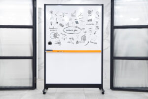 横幅約8mの大きな白壁。グレーのマーブル調の磁器質タイルがクールに空間を演出します。大人数の集合写真はもちろん、対象物と白壁とのメリハリある物撮りなど、さまざまな用途にお使いいただけます。壁面にはピクチャーレールを設置しております。